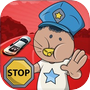 交警车上男子儿童游戏