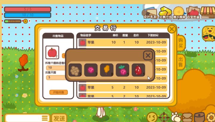有个bug,交易行当,卖苹果,卖了2个背包里还有