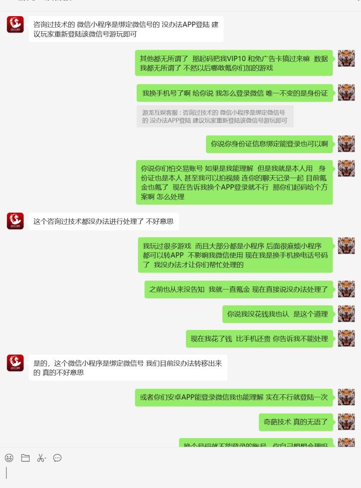 最拉胯的游戏公司,希望他们早点倒闭,之前玩个微信小程序剑侠风云,氪金之前问客户能否有IOS APP,因为苹果手机无法分屏,玩游戏的时候没办法回微信,特别麻烦,吃过亏我才这样问的,结果说会尽快开发,后期直接用IOS账号登录,结果现在IOS app出来了,告诉我微信小程序无法登录,真跟吃苍蝇一样恶心,早这样说我能氪金?起码也是大几千,从来没见过这样流氓的公司