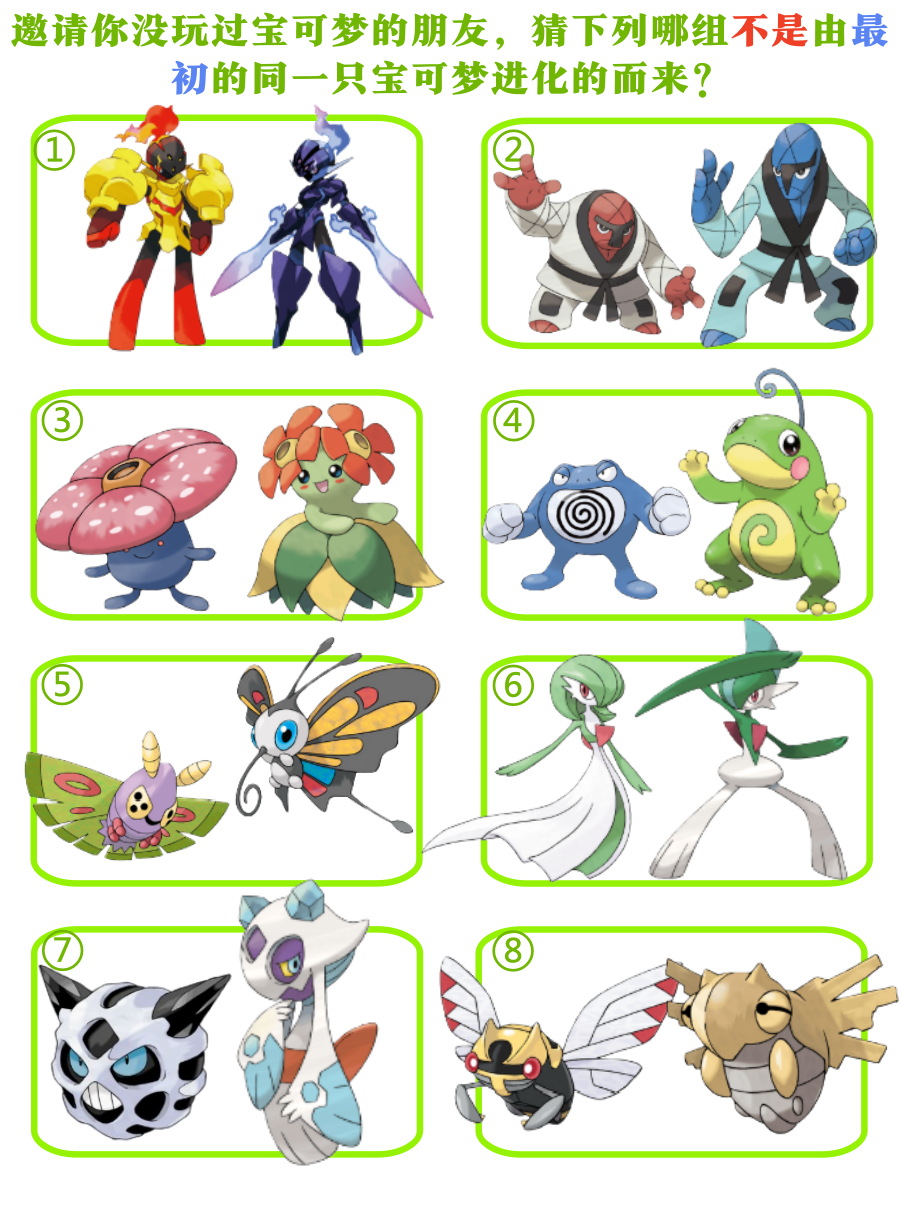以下宝可梦,哪组不是同一只进化而来?
