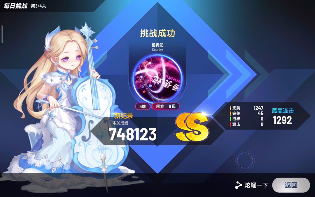 不知道大部分挑战者是否跟我一样倒在了歌曲的最后阶段。 我尽管用了最快手速挑战,结果最后阶段还是吃了一点亏,没达到高分