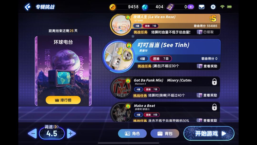 最近发现个奇怪的bug,就是明明已经通过打歌解锁的歌曲普通和困难难度,只要退出一次游戏就会变成未解锁状态,这个bug从元宵节那次版本更新之后就出现了,我现在的情况是,所有新出的歌曲都不能正常解锁,只要退出一次游戏就会退回到解锁前状态,奇怪的是之前的老歌是可以正常解锁的,只有新歌不行,而且更奇怪的是这个bug还会挑号,我用小号试了下同样的歌是可以正常解锁的,只有大号不行,试了好多次还是这样,希望官方