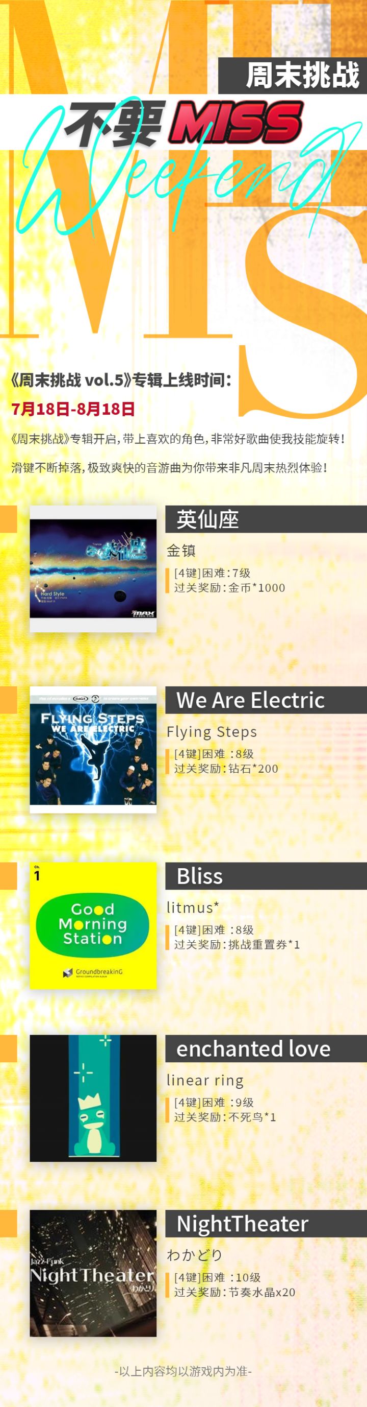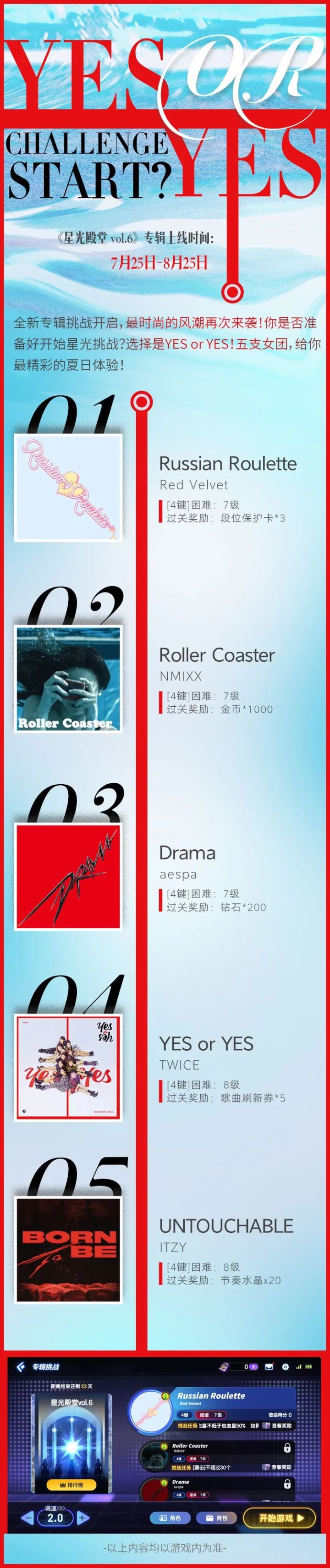 亲爱的演奏家:为了给大家带来更好的游戏体验,我们计划在7月4日10:30对全服进行不停机更新。由于此次为不停机更新,维护期间所有演奏家们不受任何影响。本次更新内容如下:(1)推出一张新专辑《欧美流行vol.3》;(2)大月卡替换十首歌曲;(3)每日挑战新增关卡曲池;(4)修正歌曲名称错误的问题;节奏大师运营团队