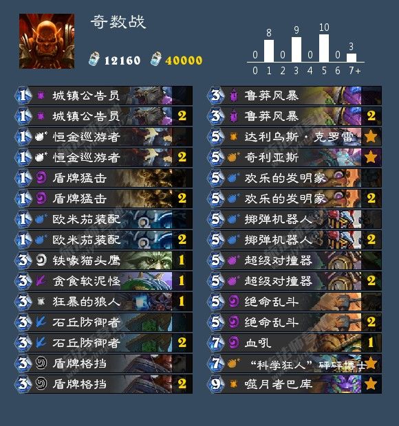 作者:我爱安度因,我怕他完了……我爱他,可提莫谁爱我啊!老哥们好,我是(似乎已经不存在的)LFM战队第一菜LFMOrange,ID:名起得烂#5416,控制牧与防战的忠实信仰者。这次给大家带来一套胜率不俗,娱乐与强度兼具的原创构筑:任务核弹牧,在上周的英雄乱斗里表现还算满意:诶嘿嘿(谦儿哥笑声是不是心动了呢?(没有啊古那)话不多说,先上牌表:AAECAZ/HAgQJ7QWWxAKQ0wI