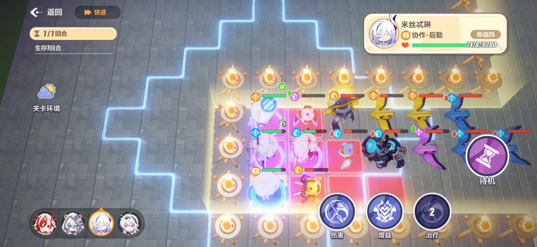 左边开路和上边开路都可以,其实琪亚娜更多是开路过程中配合符华反击快速清场,中后期输出不重要更多是防御和卡位。
