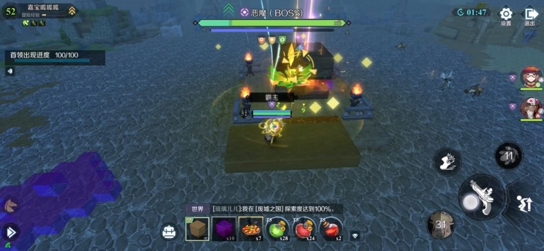 这个图的小怪会远程攻击,所以不能坐骑在天上飞,只能拉怪,切记要补一个方块,boss和我们身位一样不然他会出来,而且一定要等到第二波怪的时候补门。