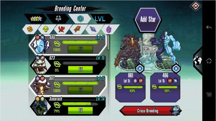 《突变:遗传的角斗士》是一款由kobojo开发的欧美风另类养成游戏。因为有些玩家因为语言原因不知道游戏的操作步骤,现在我就来介绍一下游戏的基本操作和特点。 首先是英雄基因组合方面,一开始进入游戏的初始任务就是选择2个英雄进行基因组合出1新的英雄,英雄有1到2个属性,组合的新英雄会根据这2个英雄的属性随机搭配而产生。英雄进行基因组合的条件就是基因条(绿色的条)100%才能进行,而基因生产完成后,是