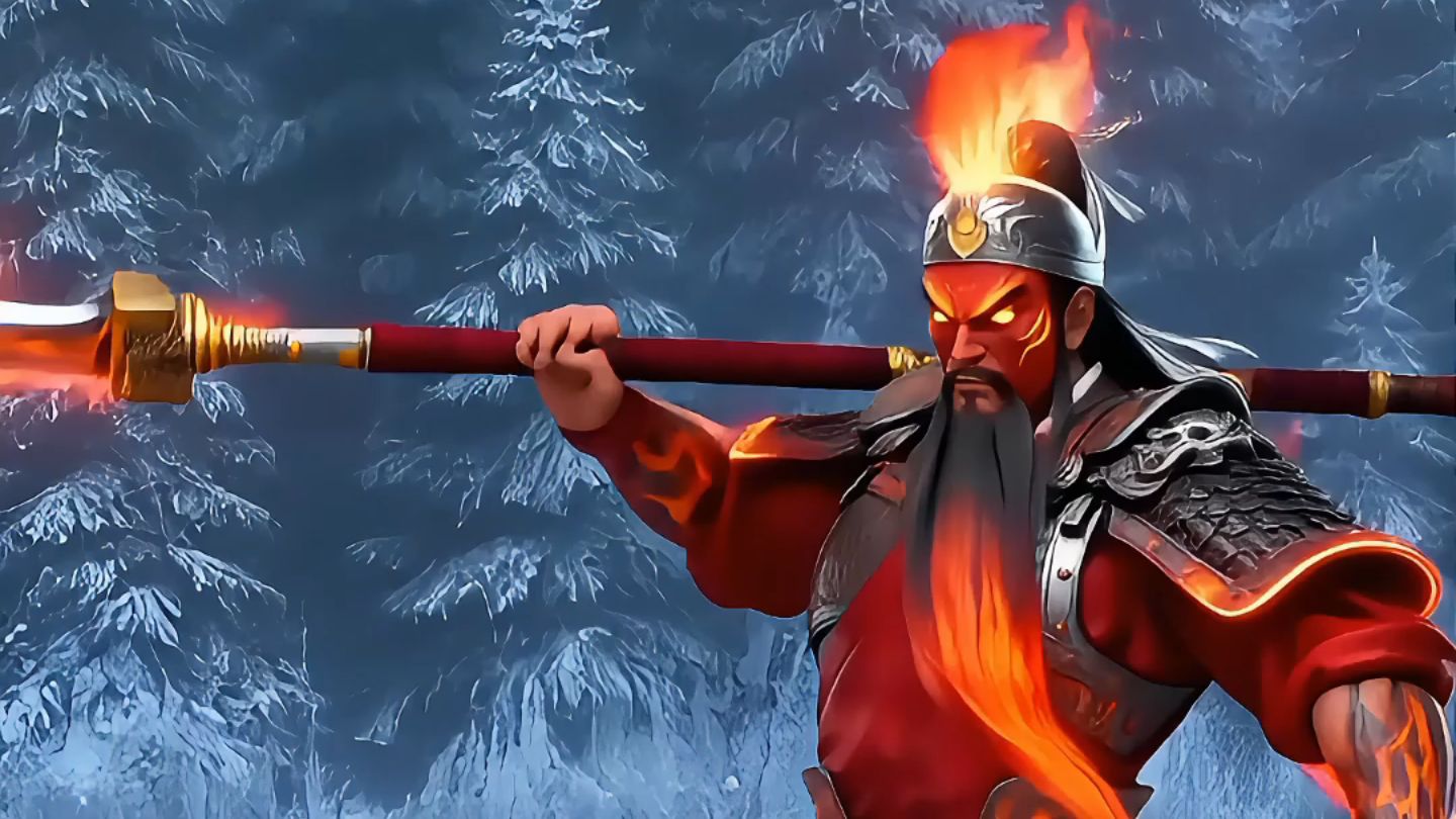 火魔关羽,全量上线 冰霜为纸,烈焰为墨。青龙偃月刀出,炎龙三十丈啸空。巨石?一刀两断。松林?化为灰烬。谁说关公只会温酒斩华雄?今日便叫你见识,什么叫冰火双重奏!这刀,够长;这气势,够炸!国风美学与极致特效的碰撞,一秒燃爆你的屏幕。 #冰火双重奏 #战斗美学 #视觉盛宴