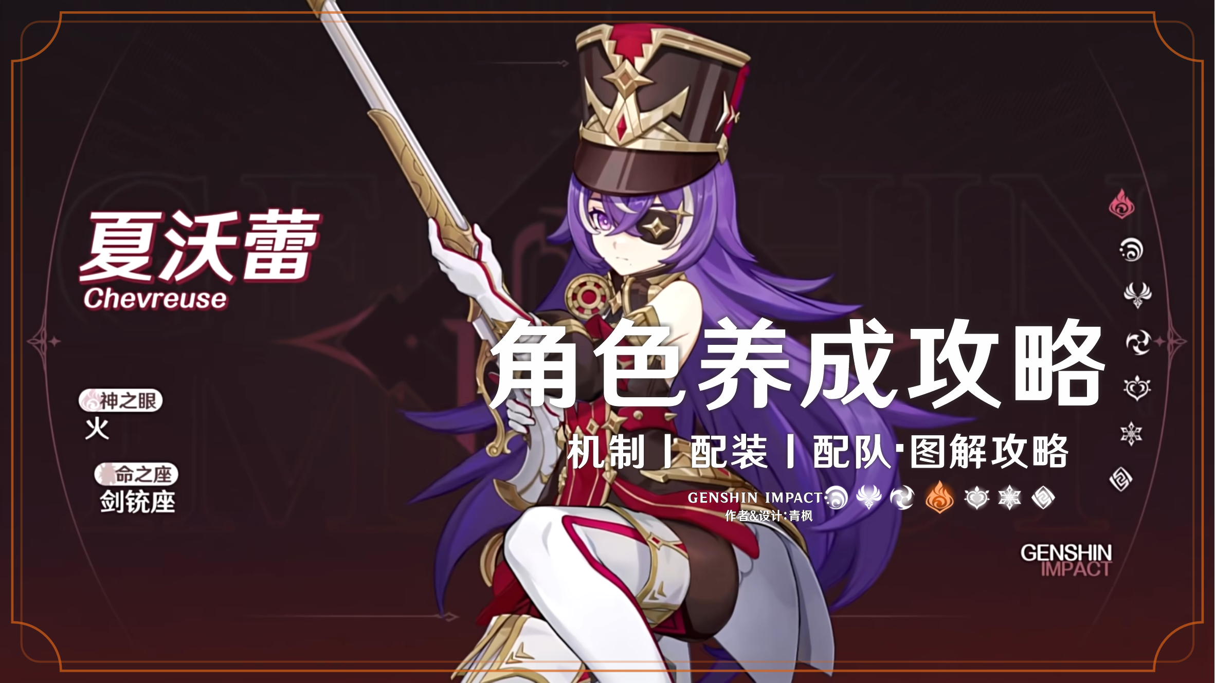 UID:185889661hi各位旅行者们大家早上中午晚上好呀,这里是为大家带来版本角色攻略的青枫本期为大家整理「夏沃蕾」的角色攻略,她是时刻恪守着心中「正义」的特巡队队长,手中的铳枪只会指向负罪之人。接下来以图解的形式简要解析「夏沃蕾」的养成参考,帮助大家快速了解角色及后续培养方向;✦角色简介✦✦『明律决罚』·夏沃蕾(火),是一位在超载反应队伍中提供多种增益的辅助型角色。当队伍中有且