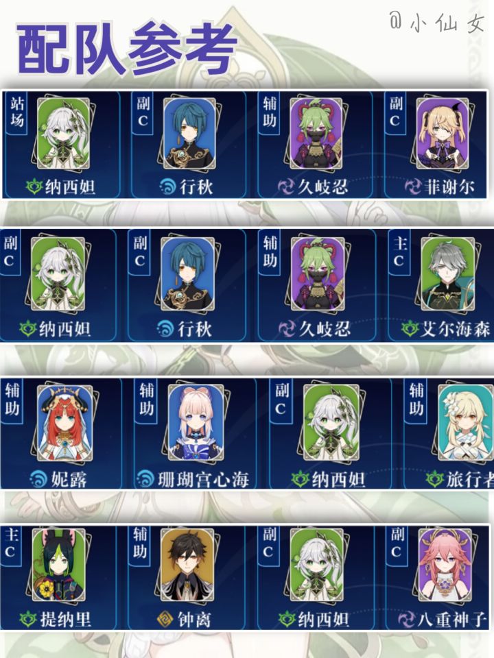 UID 204719728旅行者们好呀,这里是小仙女攻略本期给大家带来的是「纳西妲」角色培养攻略需要抽草神的小伙伴们赶紧来看看怎么培养吧「纳西妲」是一位能稳定提供草元素相关反应条件和后台伤害的草元素角色。她通过元素战技即可持续施加草元素附着搭配其他角色触发相关草元素反应,通过施放元素爆发可以根据队内元素类型进一步优化元素战技的伤害、触发间隔等。施放元素爆发后,通过固有天赋