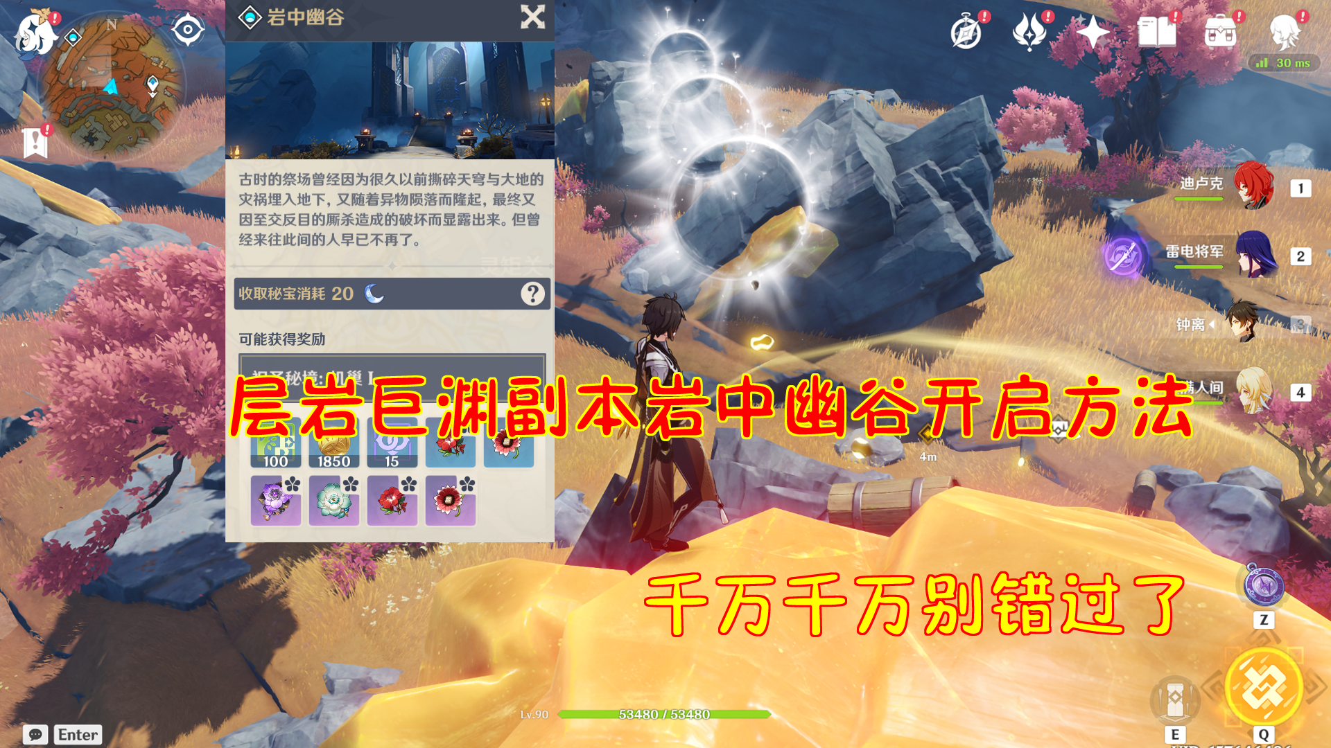 原神2.6:层岩巨渊副本岩中幽谷开启方法!千万千万别错过了【V2.6攻略】#探索解谜#