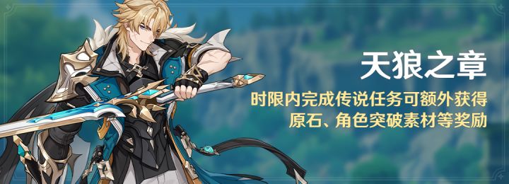 旅行者达到对应的冒险等阶,且完成相应的前置任务后,可解锁法尔伽的传说任务「天狼之章」。在时限内完成任务,可获得额外奖励:原石、角色突破素材、角色培养素材、蒙德区域特产等。〓任务开放时间〓「月之五」版本更新后永久开放〓额外奖励获取时限〓「月之五」版本更新后 ~ 2026/03/17 17:59〓任务开启条件〓冒险等阶≥40级完成魔神任务:空月之歌·第八幕「真实之月」※额外奖励获取时