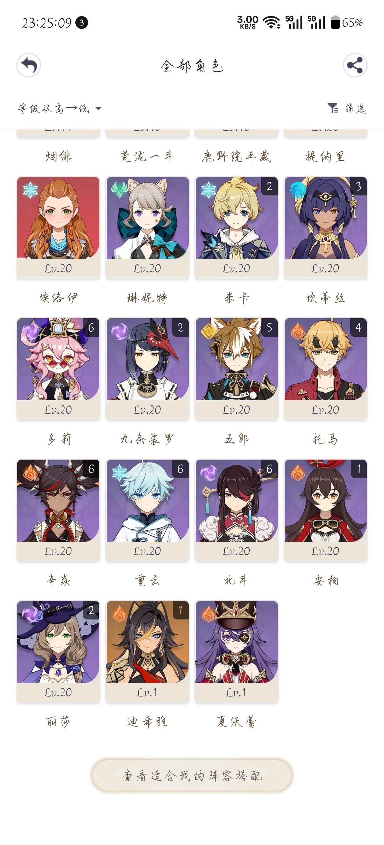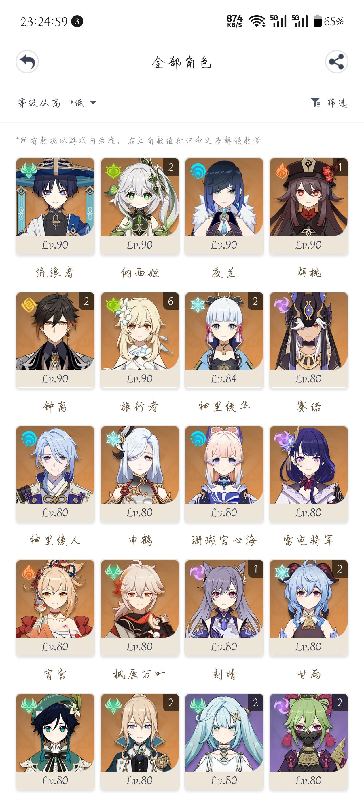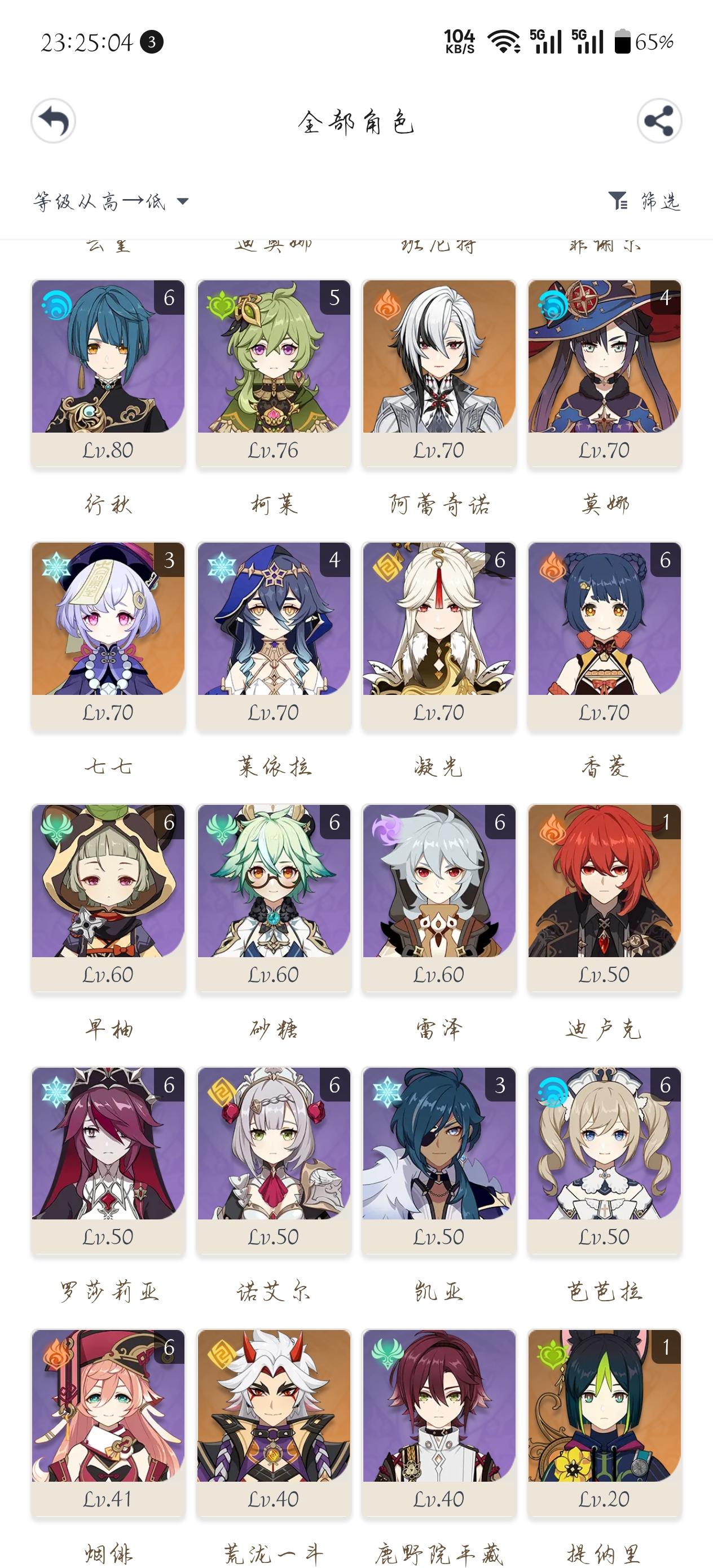 这个号是最近才开的。玩了好几天。才搞到23级。地图点位还有那么多没有开。也没有主c,提纳里是活动邀请来的。有点想抽少女。但是又怕抽了养不起来。