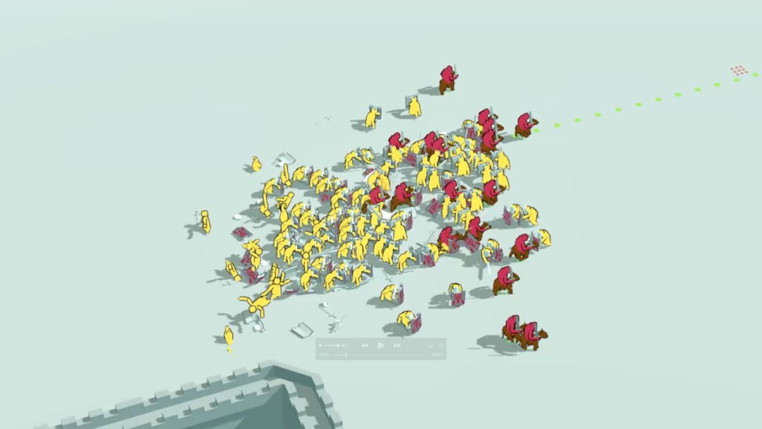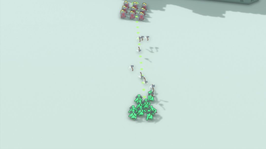 之前大家建议我们做一个骑兵,试着搞了一个。骑兵在短距离移动的时候会速度会像其他单位一样正常行走,但骑兵在开阔的地区进行长距离移动,会切换到冲锋状态,快速的逼近目标:骑兵速度超块,非常勇猛,在开阔地是大杀器,容易就可以冲开敌人的阵型:下面是一个18骑兵的小队对阵100盾步兵的视频,希望你喜欢这个勇猛的骑兵。