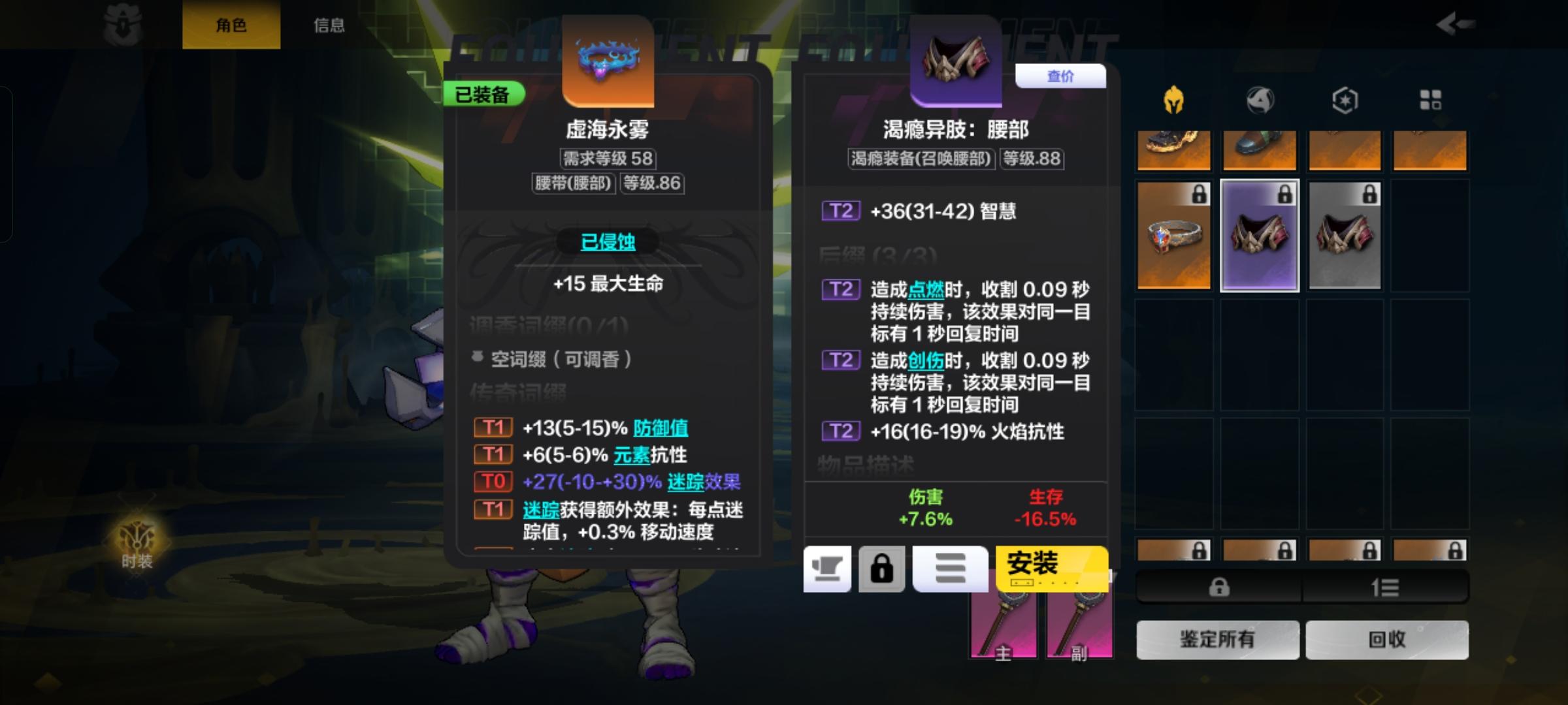 玩的不想玩了,换换装备吧,才发现好东西。冰冷呼吸,60帽伤,我蓝600多都能加1000多盾。堪比全T0.自制。还有这渴瘾腰带,收割流核心。一件装备能打出三条冷却一秒都收割,用净化的话只要85级以下的就好。成本不高。也许苦痛收割删除是因为这个吧