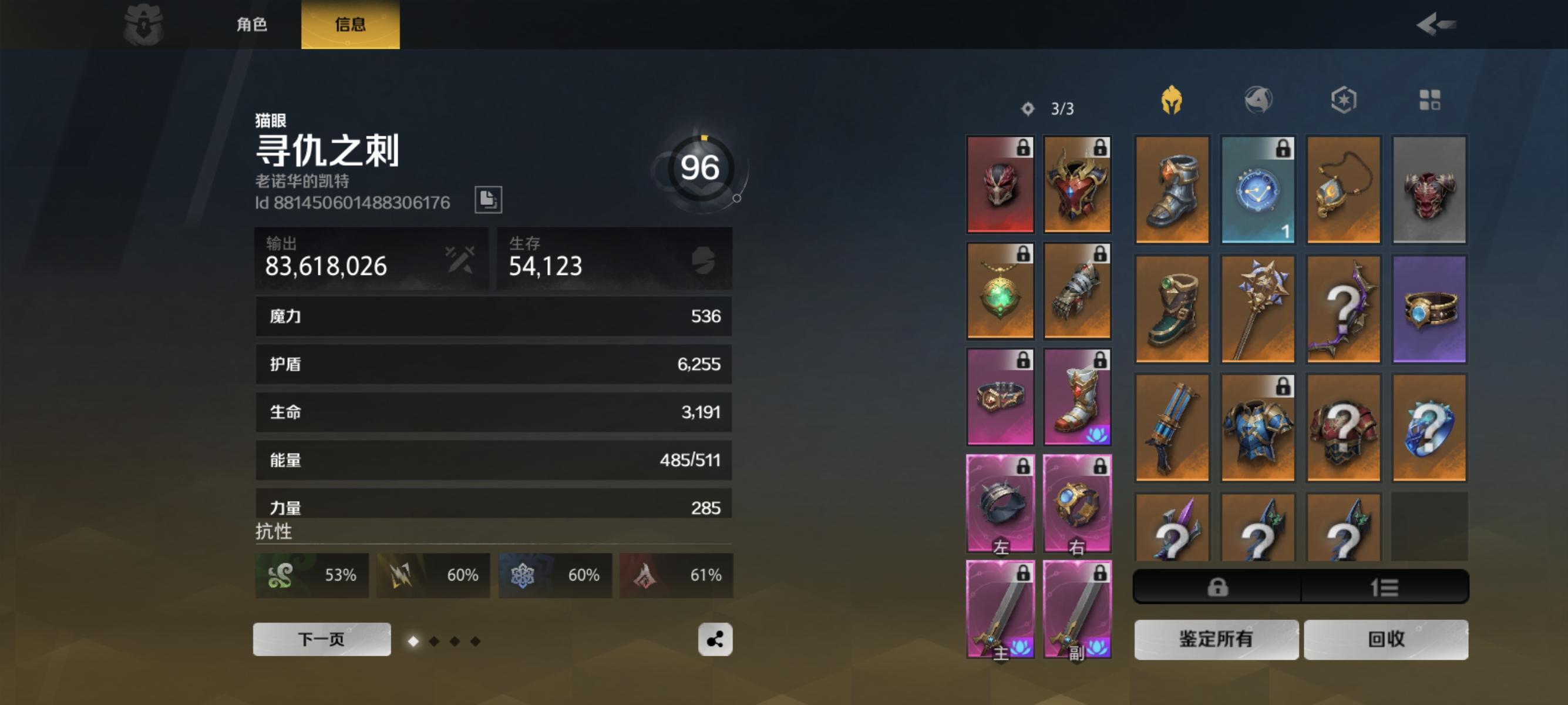 走的是战意体系,目前在4.5千亿左右,输出差不多了,但是在幽邃生存好难不知道缺在哪了其实地图怪基本上打不死我了,但是那种随机出现的位面监视者放个大是真的沾一下就死(比如冰龙喷扇形冰,炎魔放火柱这种)