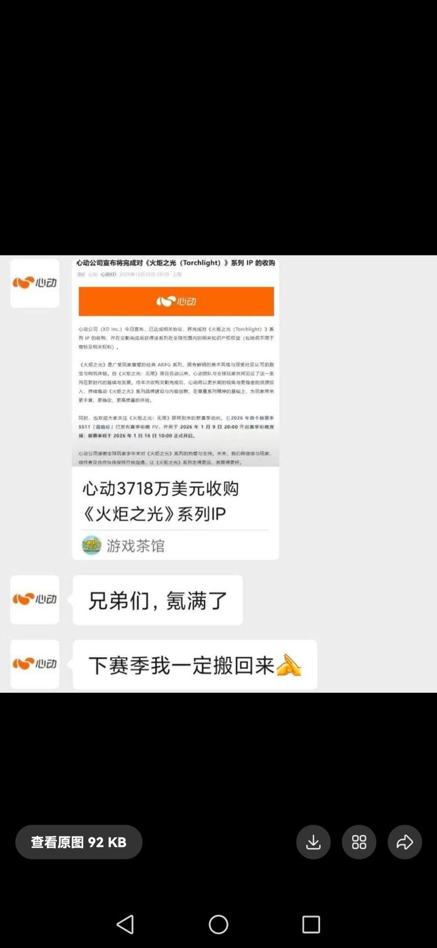 #今天游戏圈发生了啥 #资讯评论员 #火炬之光 #火炬之光无限 #心动网络 #心动完成对火炬之光ip收购 近日,曾开发火炬之光系列的工作室Runic Games和现持有方Arc Games等,与心动公司全资子公司XD Entertainment签署资产转让协议,交易代价为3718万美元,此次收购涵盖《火炬之光》系列在全球范围内的全部知识产权权益,包括商标、技术文档、社交媒体账号以及PC、手机、主