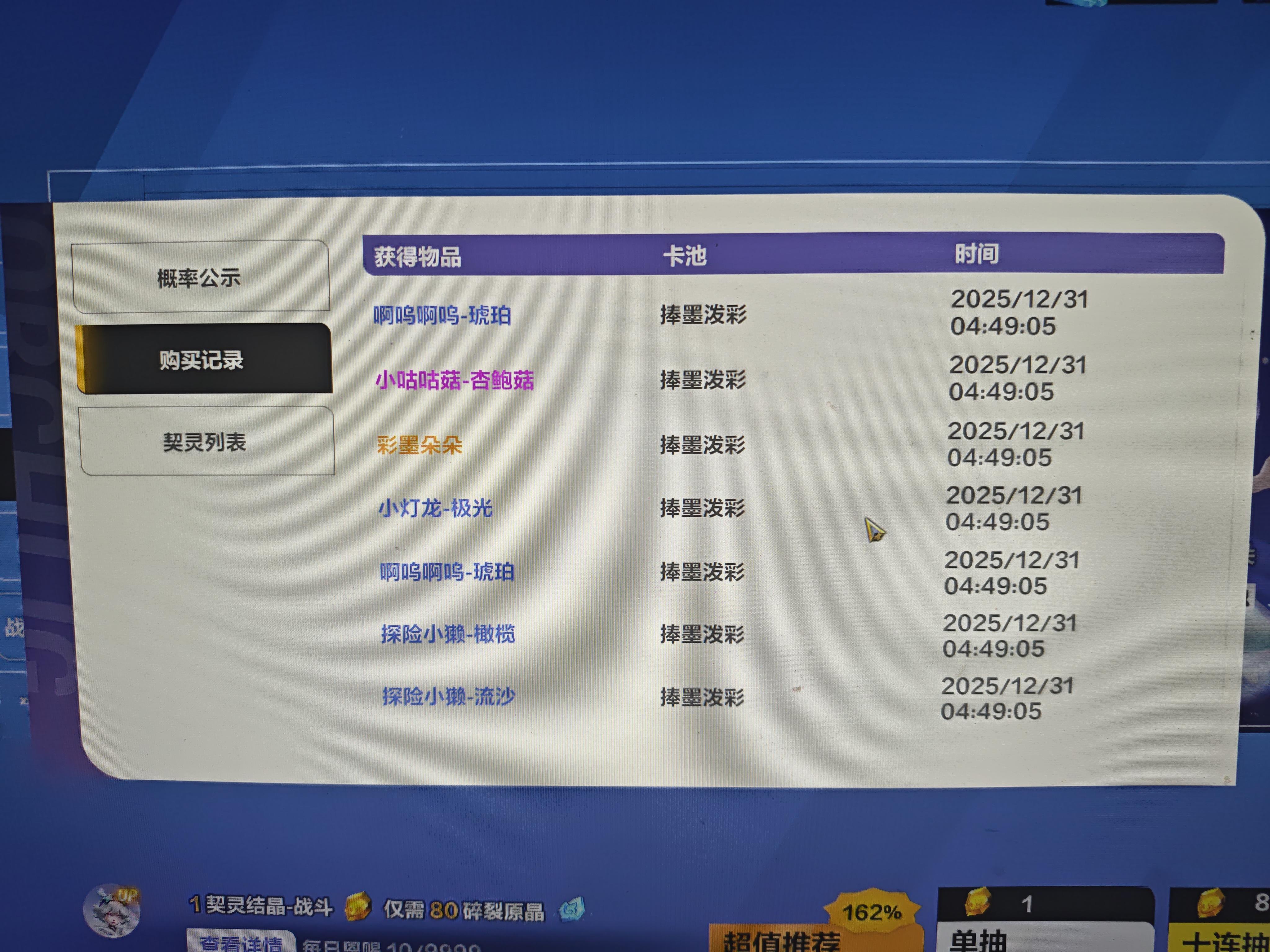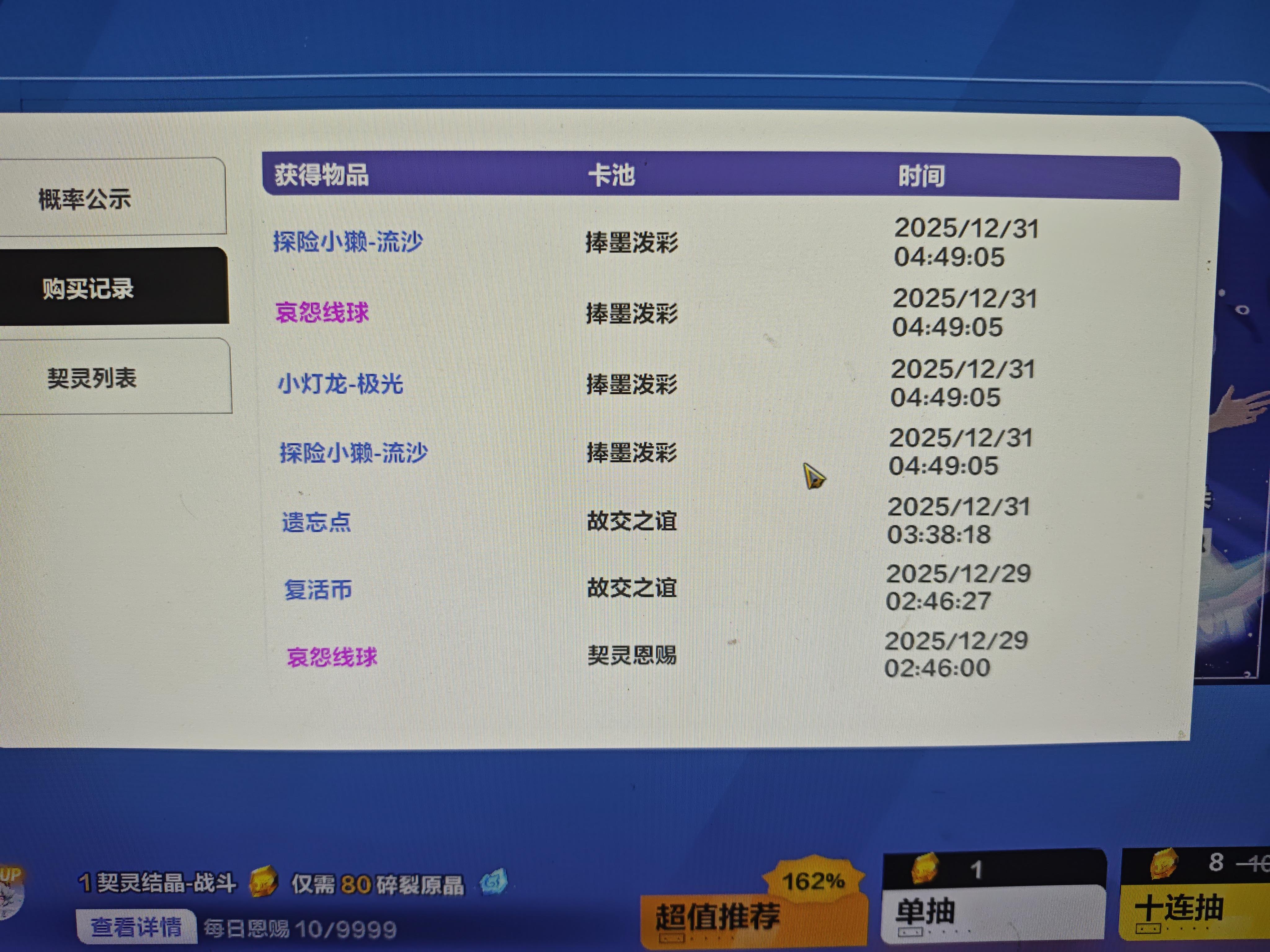就是新手嘛,然后也不知道哪里来的8个契灵结晶,然后就随手10连抽嘛,然后就出了个这个,她是10连抽必出嘛?还是说是第一次抽必出?