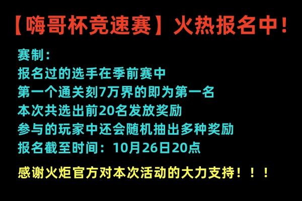 火炬之光的猎人们大家好!梦魇赛季开启已经快一个月,我们看到很多猎人的兴趣逐转移到了专家和独行这样的硬核模式……现在,竞速活动来啦!所有猎人都可以在竞赛服参与角逐,赢取丰厚的排行榜奖励!🌟 竞速目标最短时间击杀异界时刻7万界之主——即从「创建角色进入游戏起」到「该角色击败异界时刻7难度的万界之主」所花费的时间(以角色在线时间为准,期间如果角色下线则不计入时间)📢 竞速规则全新竞赛服1月2