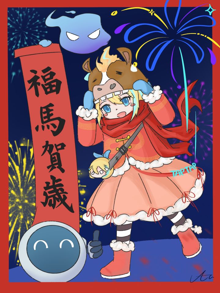 嗒啦啦除夕夜携噗噜噜星星火前来拜年,福马贺岁,祝大家马年行嗒运,嗒吉嗒利,马上有福。穿得暖暖和和,出来放烟花啦!#TapFamily #嗒噗同人 #嗒啦啦 #噗噜噜 #星星火