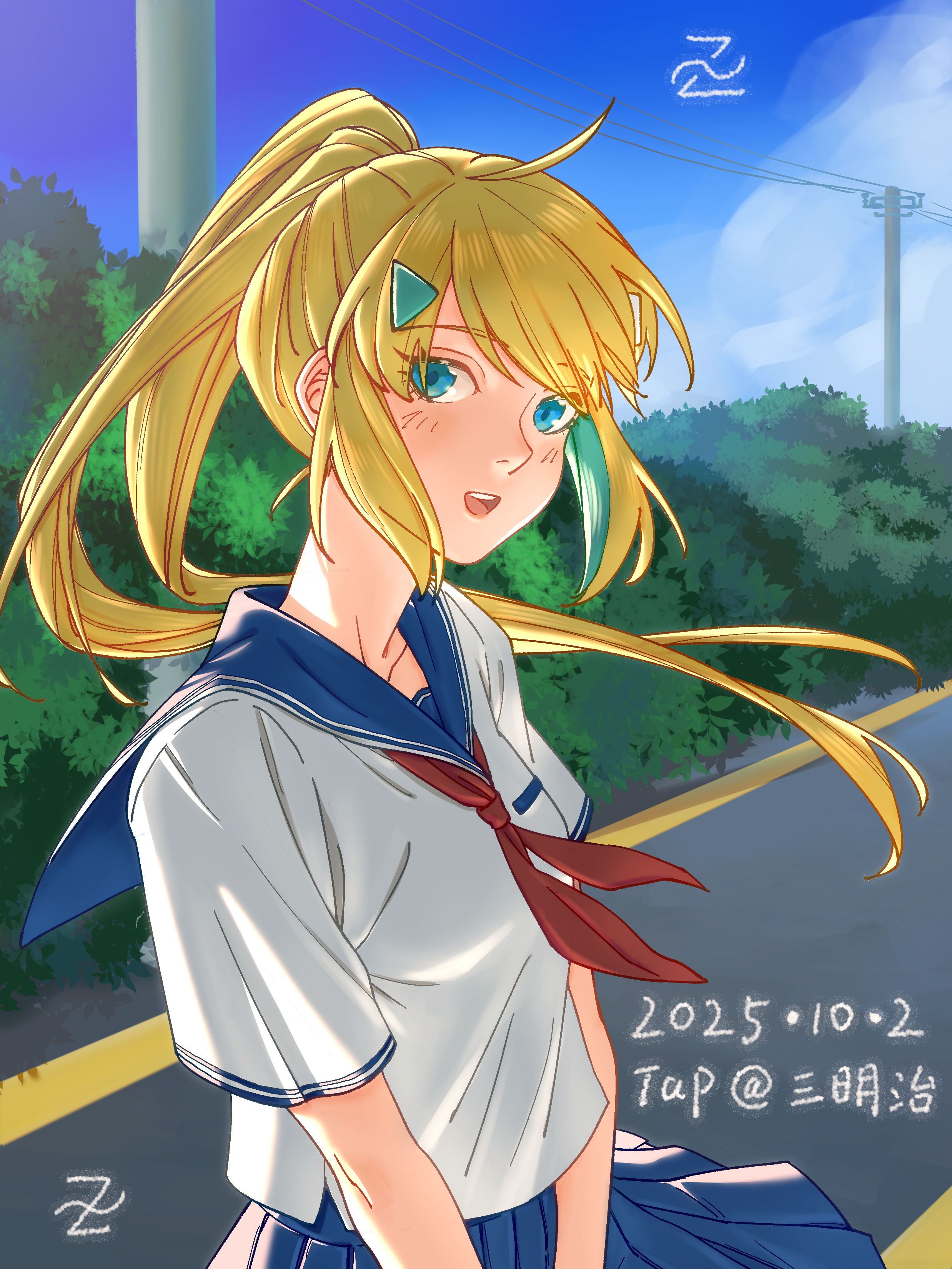 美少女配水手服,蓝天白云配小路,介就是青春!!!!#TapTap厨力赏2025 #TapFamily #塔噗同人 #绘画