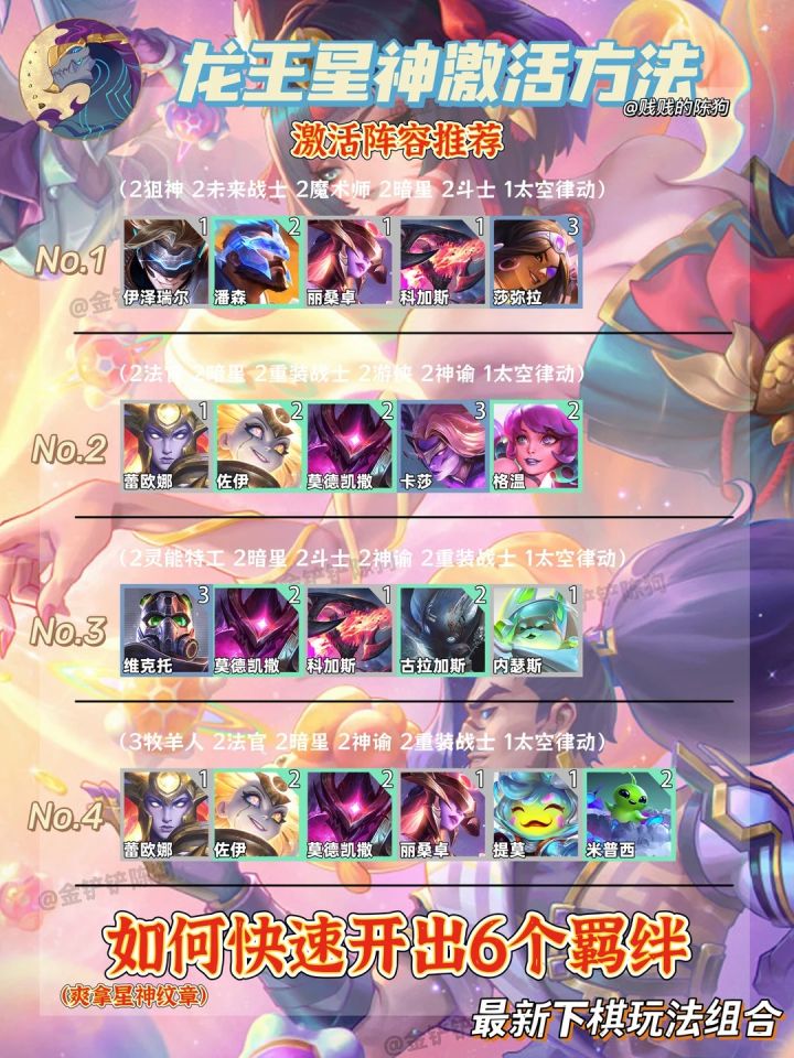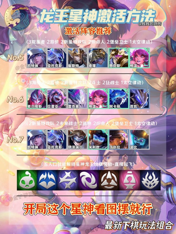 跃入星河,探寻诸神的领域~财富、深渊、契约、秩序……诸神权柄璀璨如夜空星斗,星神圣殿的大门已经敞开,弈士们,让我们一起跃入星河,与星神同行~4月23日,金铲铲之战全新赛季【星神】即将到来!紫水晶雕塑的神明塑像在触碰间崩解,拥有无上伟力的星神们再次降临世间,他们均诞生于最初的混沌,成为某种概念的化身——众星、契约、深渊、奇观、财富……向神致意,与星神结为盟友,获赐独一无二的强大力量或价值连城