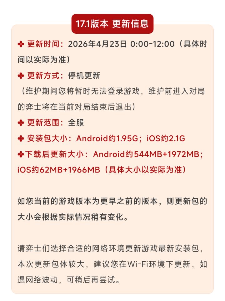 《金铲铲之战》17.1版本 4月23日更新公告