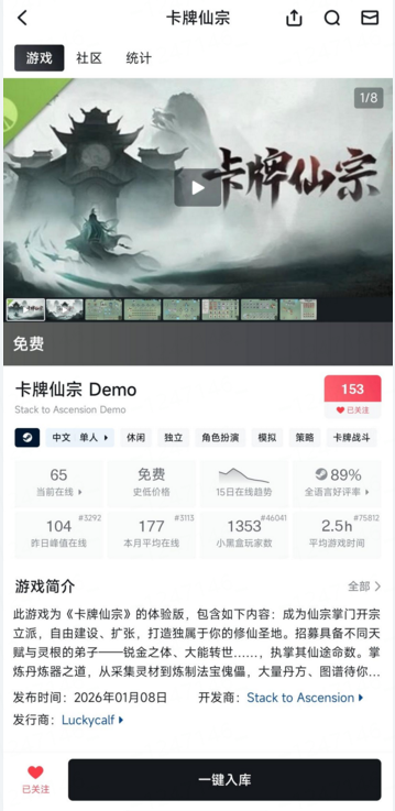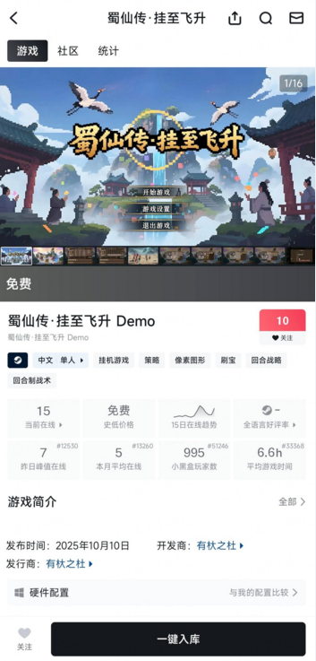 #发现好游戏 大家好!今天我也来介绍一下我自己做的独立游戏——《修仙降妖传》。 《修仙降妖传》是一款融合弹幕射击与修仙题材的轻量级独立游戏,核心玩法围绕“短局增量”展开:每局只需1–2分钟,角色自动攻击,你主要负责走位躲避密集但有规律的弹幕。 随着击败妖兽,你会获得修行资源和随机装备,逐步强化角色能力,形成一种越打越强的“滚雪球”式体验。这种增量感体现在三个层面:一是技能树升级,比如解锁新技能、