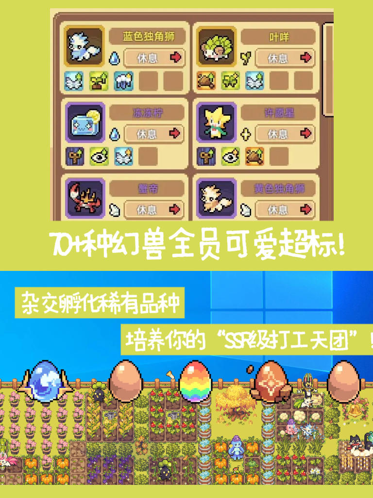 🎮《幻兽大农场》🎮⏱️游戏现已发售~新史低折扣中~⚙️『 #steam游戏 ☑️』🕹️ #种田游戏 #像素风 #放置游戏♟️♟️♟️♟️♟️♟️♟️♟️♟️♟️♟️♟️♟️♟️♟️♟️🎲这是个啥游戏?🎲在这款放置类种田游戏中,玩家无需亲自耕种、浇水或收获,一切农活都由可爱的幻兽代劳。每只幻兽都有独特的技能——有的擅长播种,有的精于灌溉,有的则专注于采摘。玩家只需将它们分配到合适的农田旁