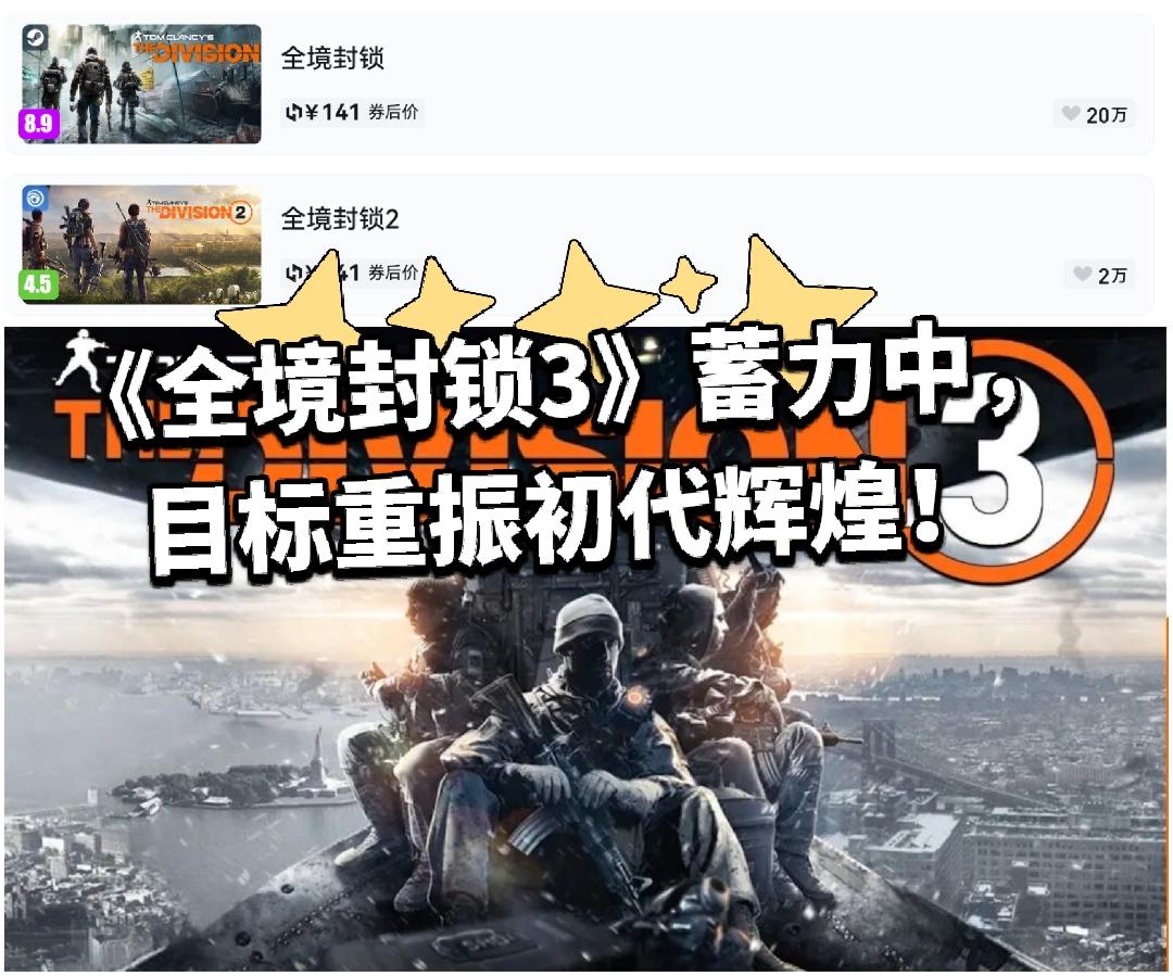 育碧《全境封锁》系列的品牌负责人朱利安·格里蒂近期接受采访时,谈及了该系列的未来规划。他着重强调,正在筹备中的《全境封锁3》的开发目标是重现2016年初代作品发售时所引发的行业轰动效应,力图将这款续作打造成影响力同等级别的“庞然大物”。同时,系列现有作品《全境封锁2》也将迎来名为“幸存者”的大型更新。该更新会将游戏舞台置于遭遇超级风暴后的华盛顿特区,地图会因此进行改造,并引入全新的天气环境影响要