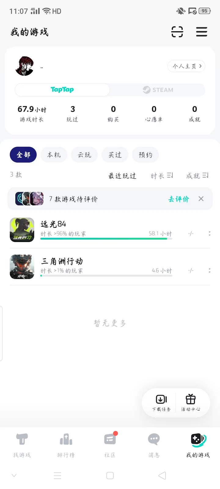 关于云游戏体验问题,可尝试通过TapTap-我的游戏-右上列表-帮助与反馈-联系进行反馈