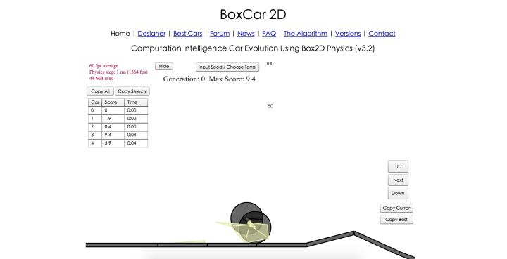 《梦想之车(Dream Car)》最初的灵感来源于早些年国外的一个网站叫做boxcar2d。当时作为一名萌新程序员的我看到车子能自己进化,觉得很是神奇。然后就在今年的春节前几天,因为刚做了几款很烂的纯色块游戏而垂头丧气的我,不小心在以前记录的Google Keep里翻到了这个站。打开玩了一会儿,我在想,要不我来做一款完全可以自定义形状的2d物理的赛车游戏吧。所以在春节假期的几天,这个项目就慢