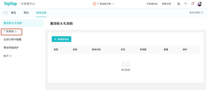 亲爱的开发者,今天 TapTap 开发者中心改版更新,主要更新了以下功能:一、游戏概览页面新增「平台运营数据」卡片在开发者中心游戏的「概览」页面新增「平台运营数据」卡片及报表(图 1),显示游戏商店整体的“曝光”、“点击”、“点击率”、“转化”和“转化率”数据。数据仅从 2021 年 7 月 18 日开始统计,历史数据未统计入内。注:“外部投放”数据的展示数和点击数暂时仅支持巨量引擎渠道的投放