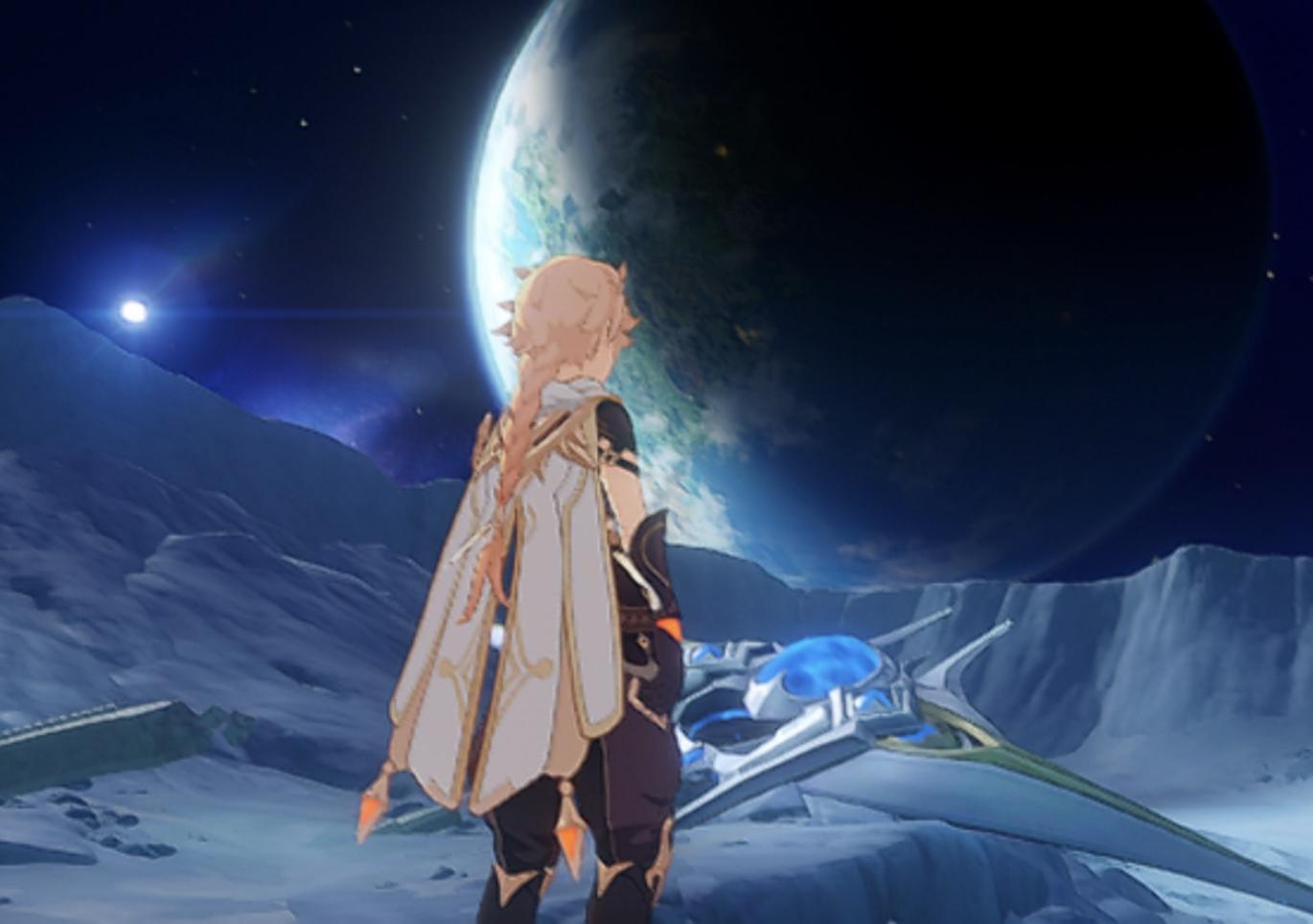 最近版本的剧情里面已经可以从月亮看提瓦特星球了。到时候一起开飞船啊旅行者们图中咱在月球上看到的提瓦特星球应该是须弥部分的#原神 #旅行者 #飞船 #空 #宇宙 #期待 #提瓦特 #须弥 #原神须弥 #新版本 #新衣服 #皮肤 #新皮肤