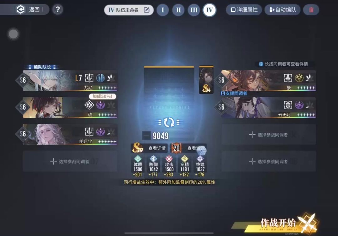 周五补攻略,说几点注意吧。 1.配队 独臂者有防御盾,需要尖峰破盾。 水雷尖峰双c,尤尼+景。 云大佬切防御,抗伤。 珑妹,奶+增益。 明月尘,候补吧。 2.配卡 常规水雷。 侧重攻击,拉满,三张攻击卡——底线,意外邂逅,向新世界去。 体质带同行+宝石海,都是为了核心技能。 激励补一张蛋生。 小技能:大力出奇迹是必带的。 跑这个刻印的时候,除了攻击还侧重了体质。所以小技能也没带其他了。 3 操作 (