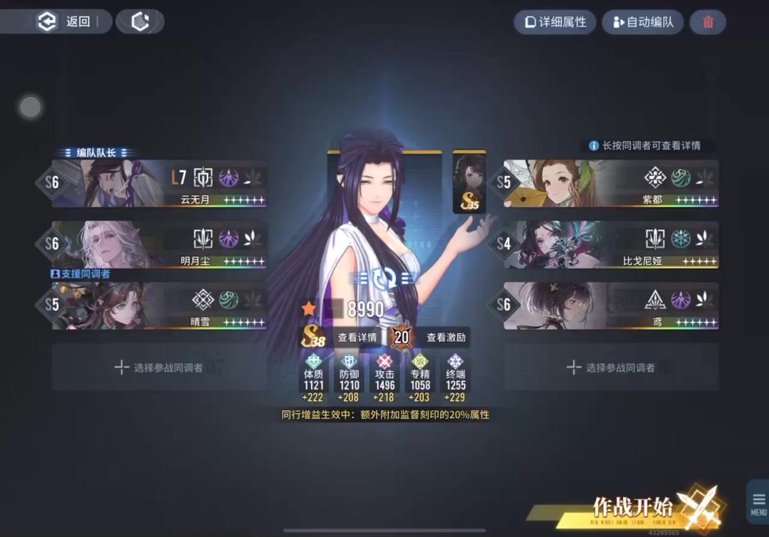 简要提示注意: 1. 保证比戈尼亚的攻速能加到云大佬,叠满攻速比戈下场,换鸢上场,临时打一点输出。 2.注意明月尘血量,随时准备奶一口。 3.云大佬在开爆发的时候,保持为攻击状态。 4.【重点】出现飞蝶,鸢离场换晴雪,及时拦截! 5.补一点:鸢一技能调整角度,是可以同时打到三个分身的。 完整攻略参考:https://www.taptap.cn/moment/605962620243018261 #