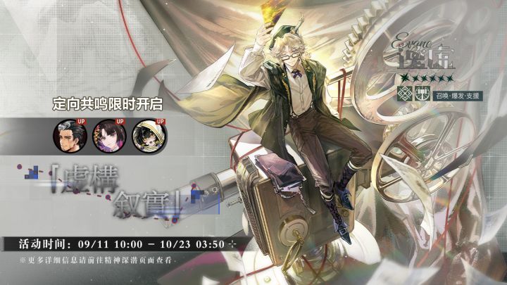 ▶开放时间09/11 10:00 - 10/23 03:50 ▶UP同调者★6逸虚★5修、白鸟梓、吉娜 更多详细共鸣信息,监督可登录游戏获取。#白荆回廊 #今日逸事