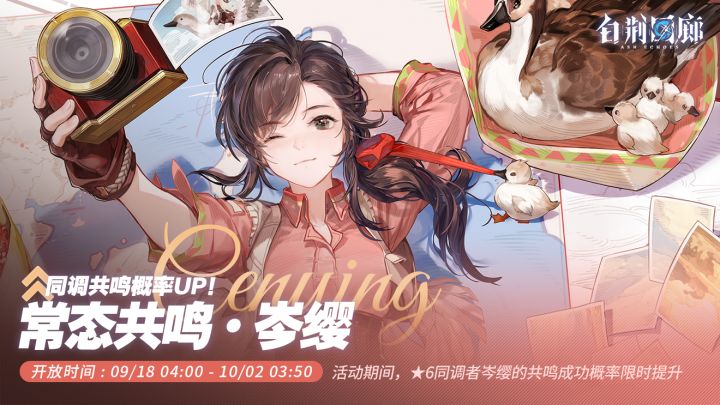 本期「常态共鸣·UP」为「常态共鸣·岑缨」。活动期间,★6同调者岑缨的共鸣成功概率限时提升。 ▶开放时间09/18 04:00 - 10/02 03:50 ▶UP同调者★6岑缨 更多详细共鸣信息,监督可登录游戏获取。 #白荆回廊