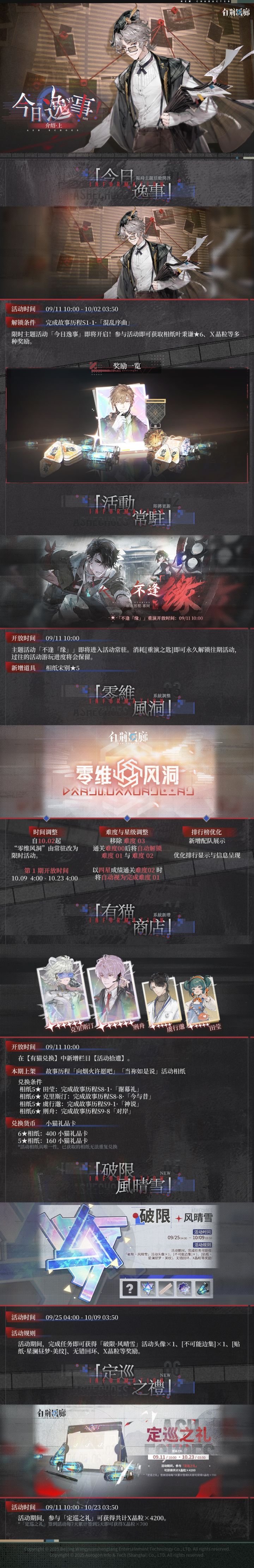 参与活动即可获取相纸★6叶秉谦、X晶粒等多种奖励。 ▶活动入口主界面 - 「今日逸事」 ▶活动时间09/11 10:00 - 10/02 03:50 更多详细活动信息,监督可登录游戏获取。 #白荆回廊 #今日逸事