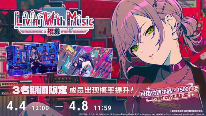 愚人节 ver.:初音未来(Original CV by 藤田咲)、花里实乃理(CV. 小仓唯)、东云彰人(CV. 今井文也)、天马司(CV. 广濑大介)、朝比奈真冬(CV. 田边留依)