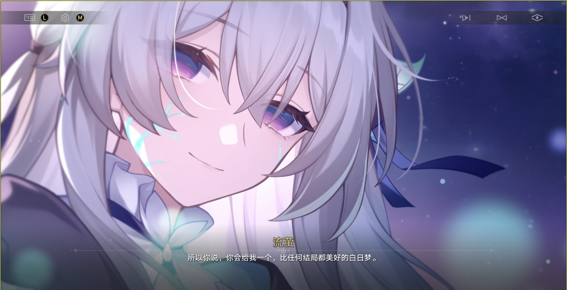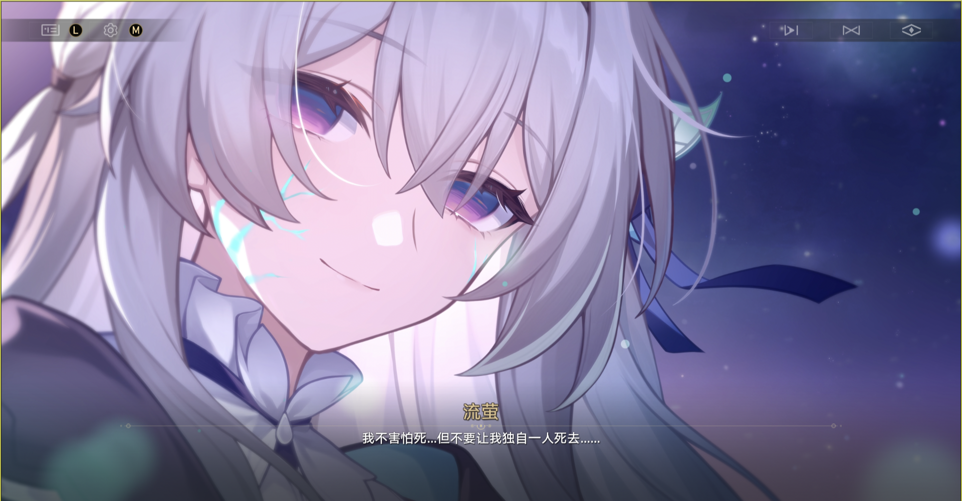 我不是流萤厨,但看完了3.8的剧情也真的很有感触,她真的是一个很好的女孩了。给人一种淡淡的温柔感,但是又那么的坚强,明明只想要做一个普普通通的小女孩,过普普通通的日子,但确依旧敢于直面自己的三次死亡,为了我们她甘愿牺牲自己,行于[终末]的道路,确为了我们的[开拓]之路直面自己最黑暗的过去,这种轻轻的,却又充满了力量的维护真的温暖了屏幕外的我 她说[流萤]这个名字是她自己取的,因为她想像一只萤火虫一
