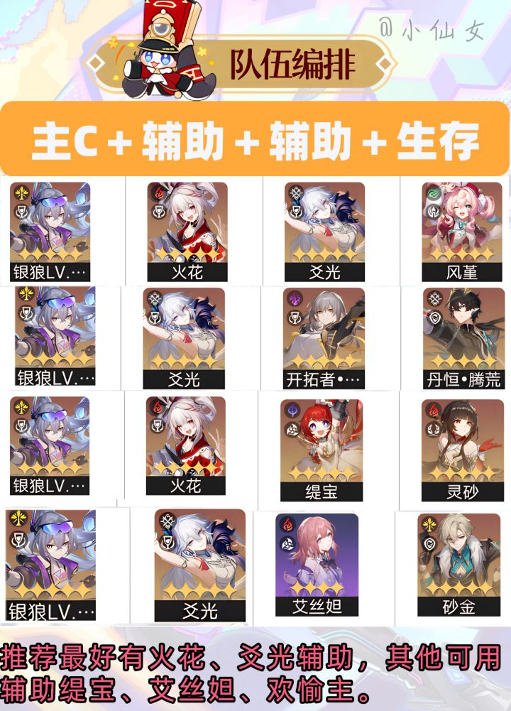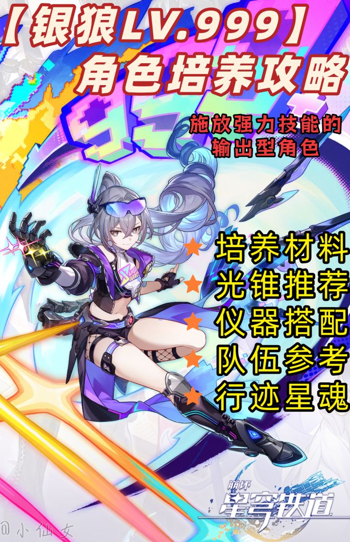 UID:104719728角色机制:银狼LV999为虚数属性、欢愉命途角色。作为周年核心主C,狼尊主要依托队友生成笑点,搭配全队释放欢愉技,快速堆叠【隐藏分】为大招充能,开启大招后获取强化普攻,以此打出高额输出。——狼尊不吃攻击力、充能效率与伤害加成,双暴属性也无需额外堆叠,养成上可全程极致堆速度。 角色优势:①欢愉体系核心输出:欢愉阵容的伤害核心,能够把笑点转化为输出的超高速欢愉主C
