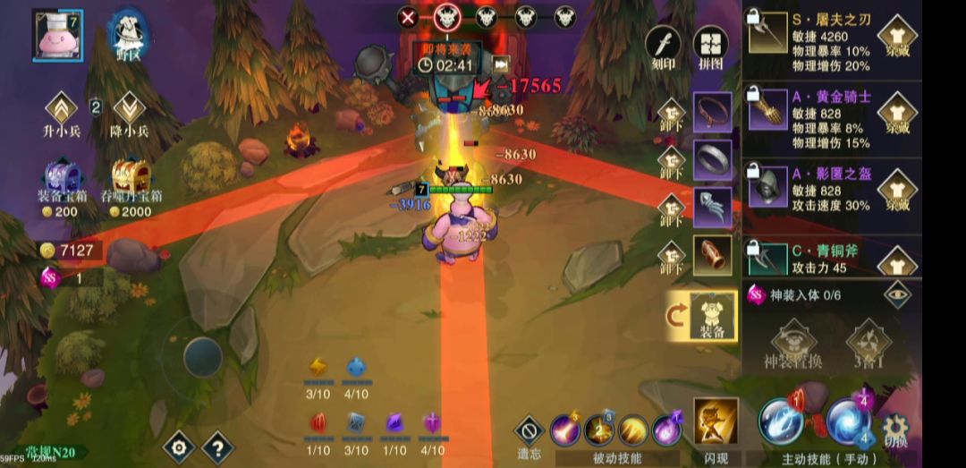 回响,分裂,咒刃,巨化,闪电,触发快,频率高,伤害也就高了。 攻击距离也远,所以打野很快,配合回响转一圈四个BOSS就一起打了。