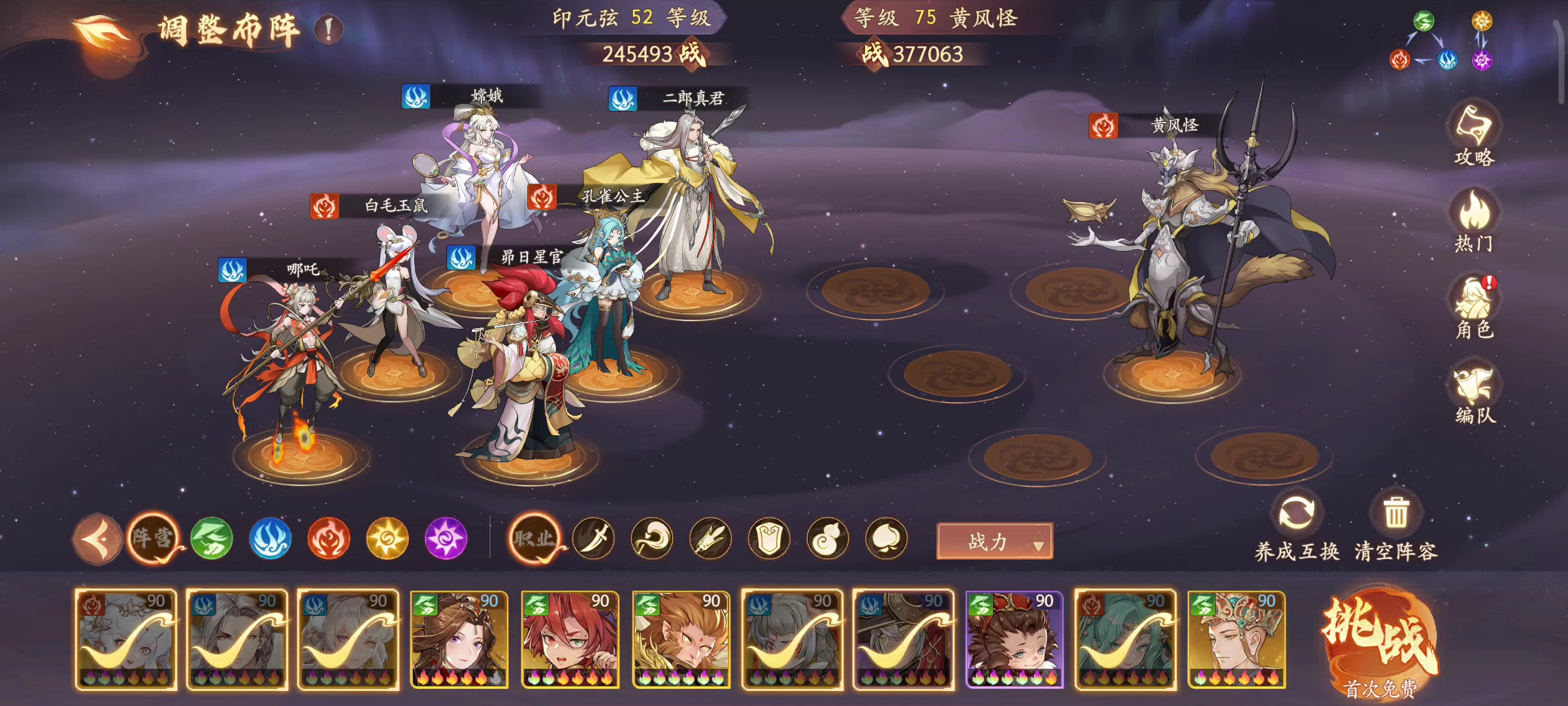 以暴制暴打法 速度要求狐狸200+,羊力龟速150左右就行。 起手狐狸拉,地藏狐狸起buff,哪吒和六耳解决守卫。 下回合对面红衣会开大,正好卡红衣开完羊力清buff然后上破防,剩下的挂自动点电母就行了。 不需要凹什么,视频中打完dps还有余
