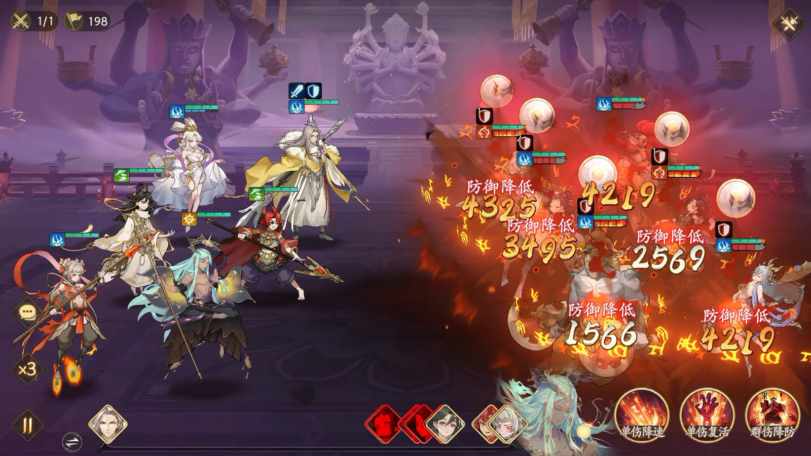 一会再发个杨戬暴打反击队的,我阵容练度都不高,没有地藏,用歪的3火九头鸟破防,除了杨戬九头鸟以外最高只有一火