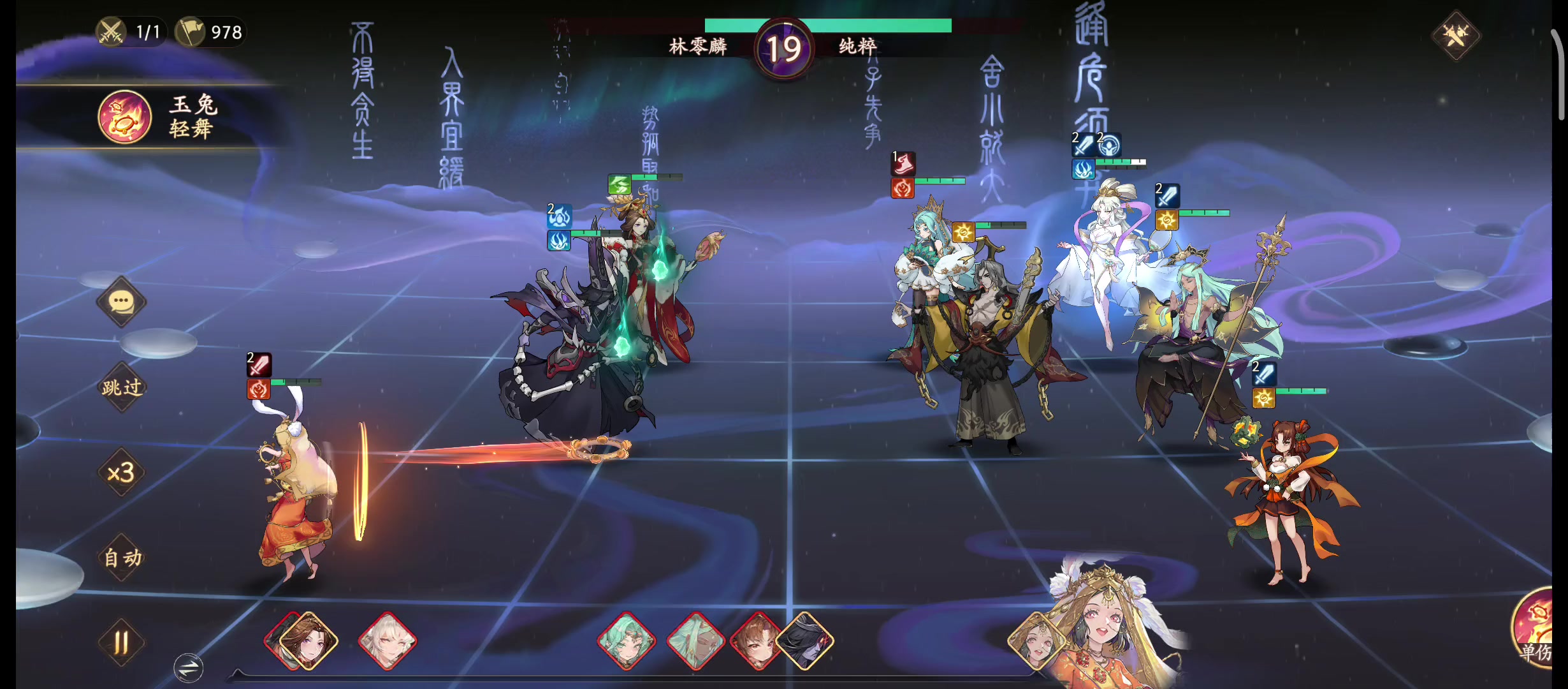 输出全速度套,尽量保持速度差不多,这样能出手就能打 嫦娥可以放前排,200速左右就行,对面放非攻击技能嫦娥有拉条必定能出手,放完技能就可以死了,前排抗技能就行,燃心有复活,有时金角会禁锢不到主要位置,没有禁锢到的人少了也很难把把燃心秒掉,金角有被动可以藏后面考虑第二轮出手再来个大 狐狸1速套,跟金角保持差不多就行,狐狸就是卖破绽的 只要金角狐狸有一个能快过对面2速,基本上都能打