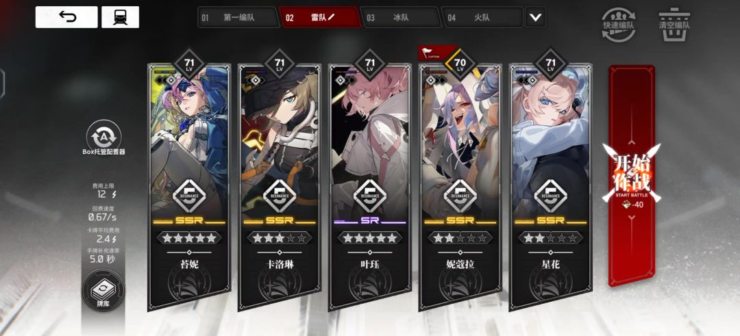 开服妮蔻拉退坑的,过年回坑,角色很少,目前这两对打副本挺舒服的,可以参考一下1队刚需5个深红 二队就星花带了深红,二队临时拉的,装备很差