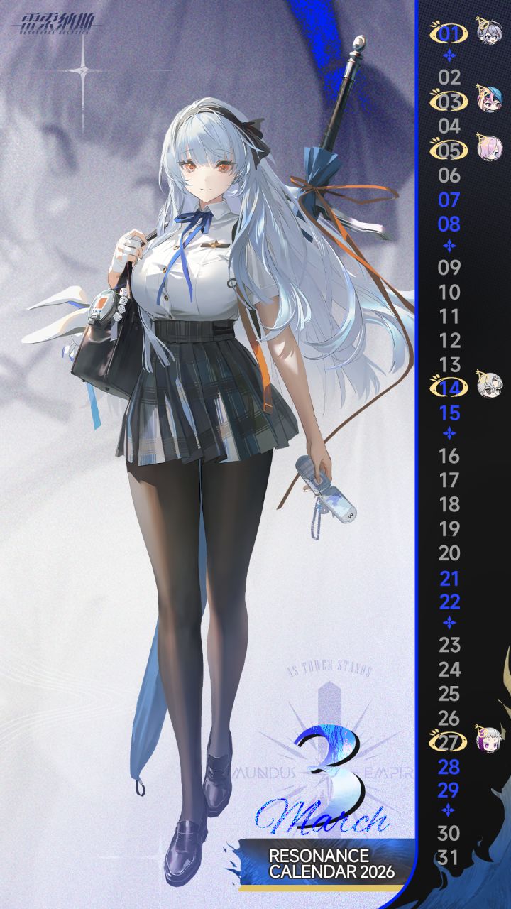 #雷索纳斯 “在以学生的身份行动时,我也会在夜晚漫步街道,就像过去在家族的庄园中散步那样,只不过地表有着不同的星空和月亮。说到这里,今晚有空陪我一同去赏月吗,列车长?” 亲爱的列车长,欢迎使用2026年3月月历壁纸~————————【下载方式】✦官方下载:http://t.cn/A6QzFLmz✦TapTap下载:http://t.cn/A6loqUxC客服邮箱:resonance