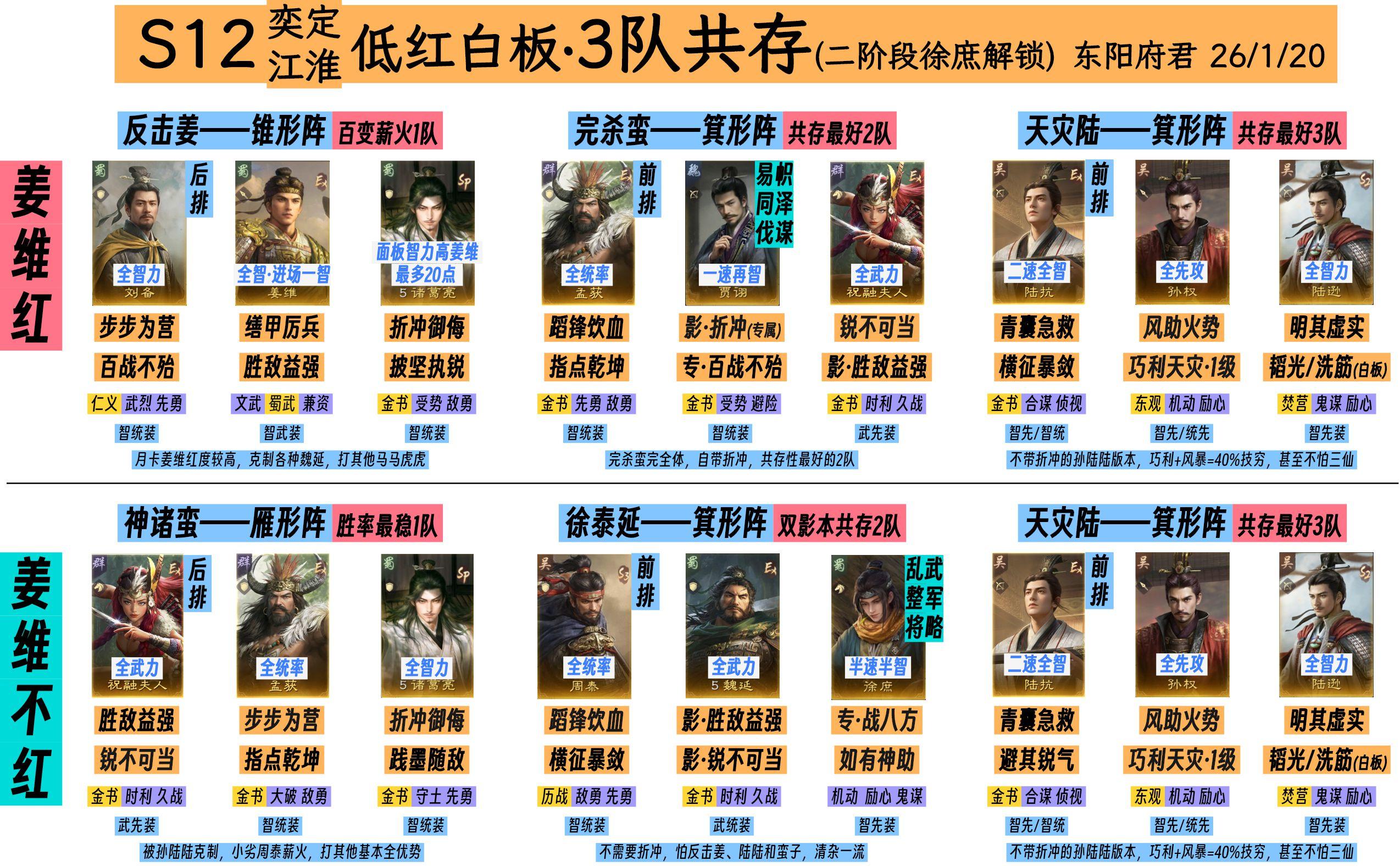 S12低红白板3队共存,2套方案,奕定江淮二阶段徐庶解锁