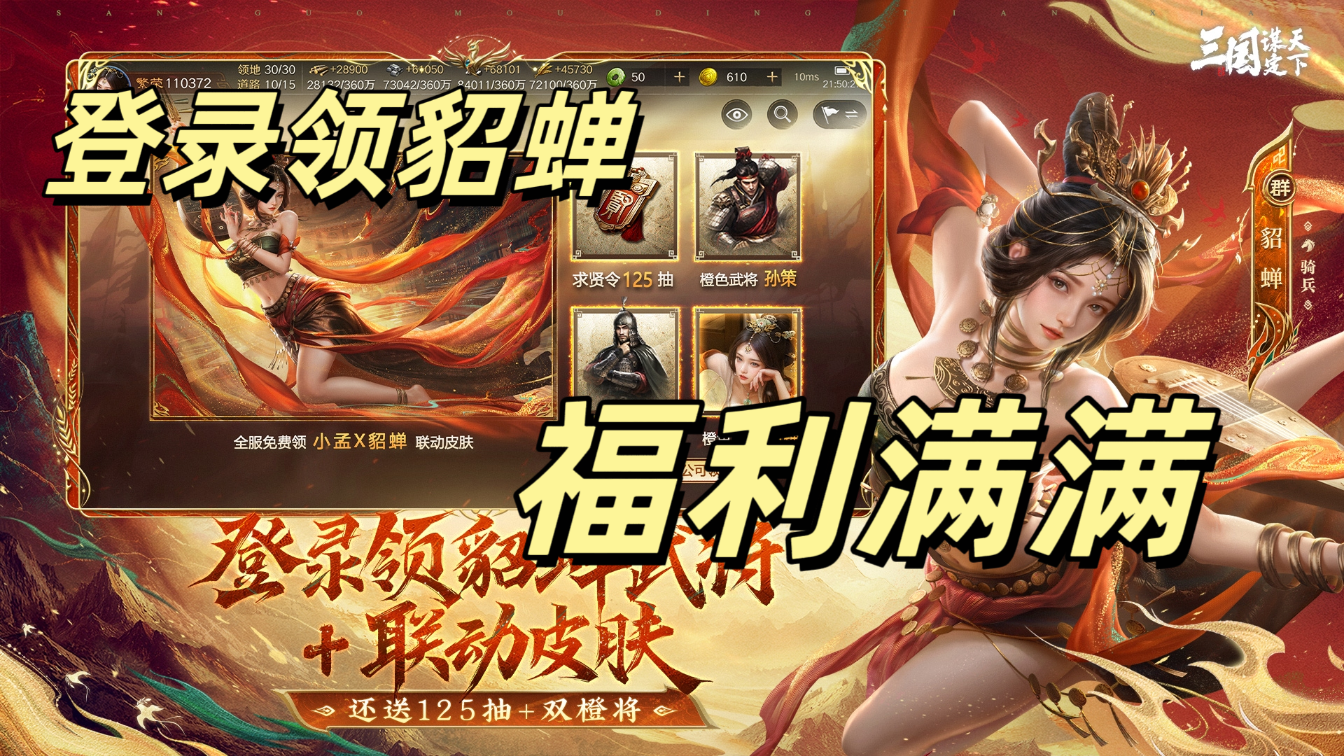 😍超顶小孟貂蝉免费送🎁登陆就送橙色武将💥新人不肝不氪垂直入坑